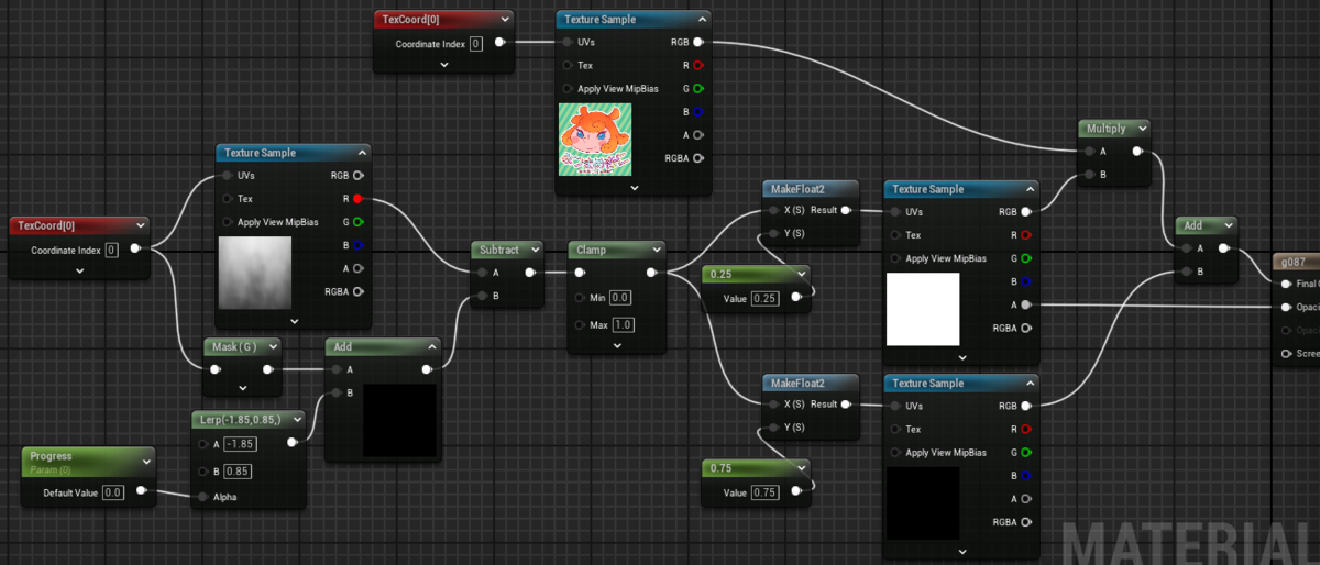 違うのはグレイスケールテクスチャの引き算にひと工夫を加えているところ。