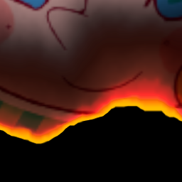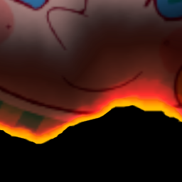 矩形じゃなくシルエットが複雑な形状でもアルファチャンネルをブレンド(乗算)すれば、ピクセルの見えている部分だけを燃やすことができます。